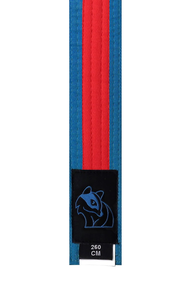 Gestreifter Budo-Gürtel von DAX. Optimal für Judo, Karate, Taekwondo, Ju-Jutsu und weitere Kampfsportarten. Satte Farben und sehr gute Verarbeitung zeichnen diesen vollwertigen Kampfsportgürtel aus.