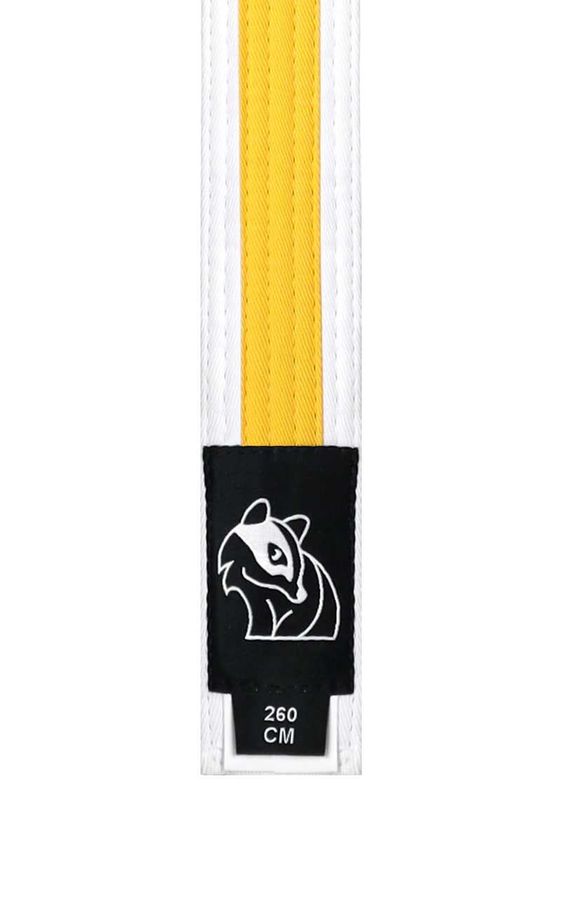 Gestreifter Budo-Gürtel von DAX. Optimal für Judo, Karate, Taekwondo, Ju-Jutsu und weitere Kampfsportarten. Satte Farben und sehr gute Verarbeitung zeichnen diesen vollwertigen Kampfsportgürtel aus.